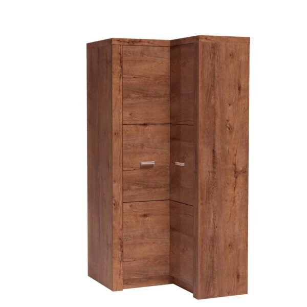 Γωνιακή ντουλάπα από τη συλλογή Indianapolis. Τα έπιπλα είναι πολύ ευρύχωρα, γεγονός που δίνει τη δυνατότητα εύκολης οργάνωσης και διαχείρισης. Η αριστερή πλευρά διαθέτει ένα ράφι και μια ράβδο. Στη δεξιά πλευρά του ντουλαπιού υπάρχουν τέσσερα ράφια, τα οποία είναι ιδανικά για την αποθήκευση ρούχων. Η ντουλάπα θα ταιριάξει ιδανικά σε κάθε γωνία, προσθέτοντας ζεστασιά και γοητεία στο δωμάτιο. Υπάρχει η δυνατότητα προσθήκης τριών ραφιών στην αριστερή πλευρά. Διατίθεται σε τρία χρώματα. Καρυδί, βέγκε, λευκό.