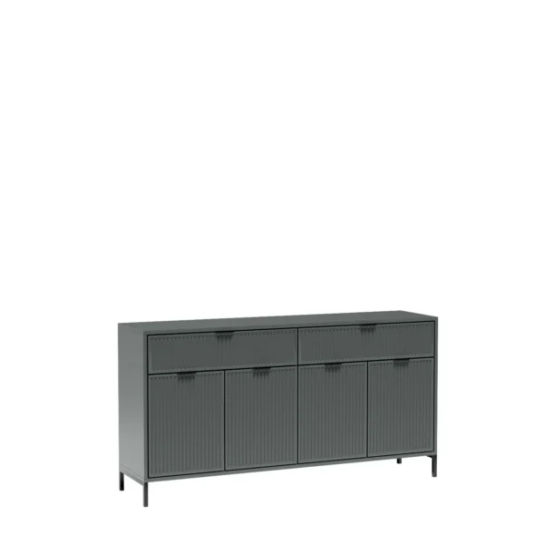 Μία σχεδιασμένη συρταριέρα που θα ταιριάξει τέλεια σε οποιοδήποτε σαλόνι, τραπεζαρία, γραφείο ή επαγγελματικό χώρο. Στην πάνω πλευρά του επίπλου θα βρείτε δύο μεγάλα συρτάρια για ρούχα, αξεσουάρ, έγγραφα, χάρη στα οποία γίνεται πολύ λειτουργική. Στα ντουλάπια θα βρείτε δύο μεγάλα ράφια που θα επιτρέπουν εύκολη οργάνωση. Διαθέσιμο σε τρία χρώματα – κασμίρ/μπλε/πράσινο.